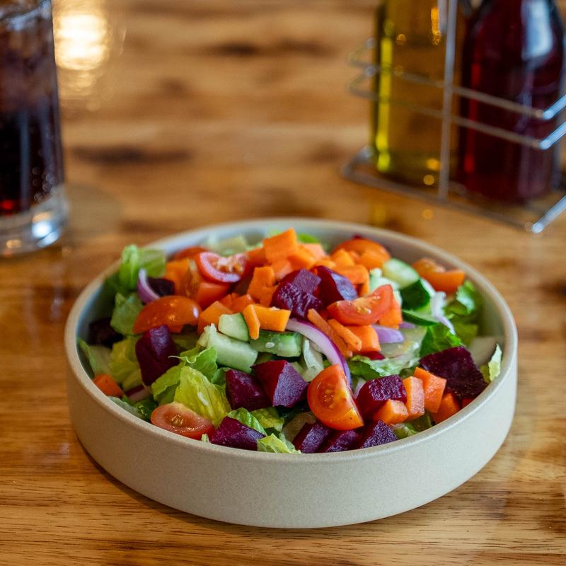 Romaine hearts, tomatoes, cucumbers, onions, carrots.