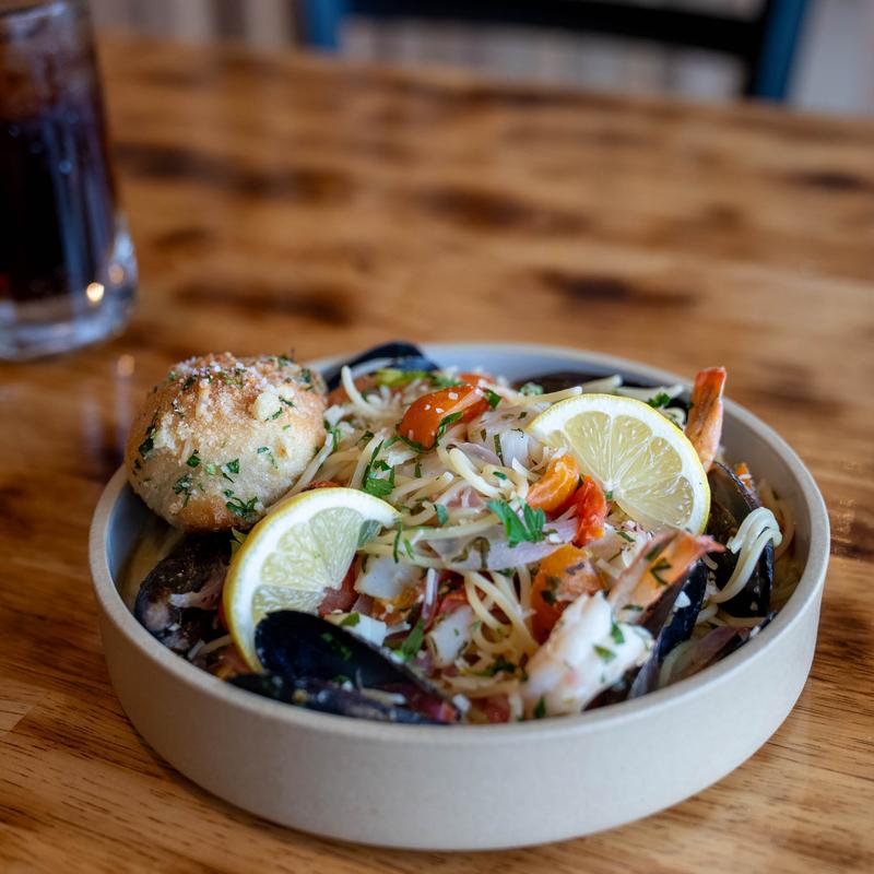 16" $23.49 | 12" $18.25 | 10" $12.95 • White base, mozzarella, feta, sausage, broccoli, garlic, banana peppers.